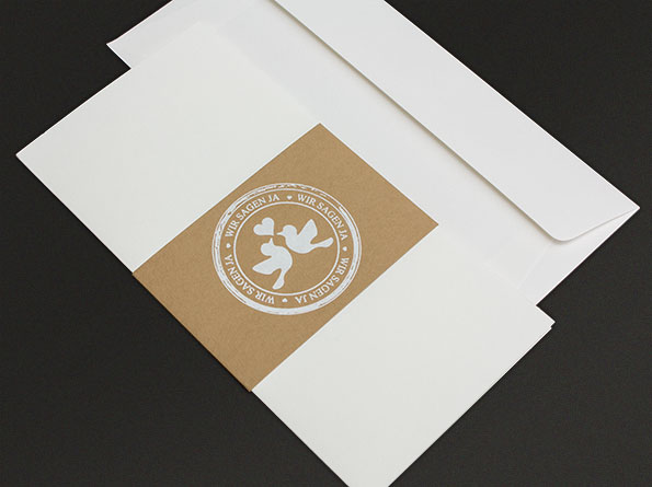 Die Hochzeitseinladungen werden mit passendem Kuvert
