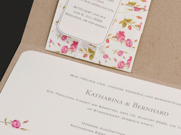 Entscheidet Euch jetzt für diese romantischen Hochzeitseinladungen und lasst Eure Einladungstexte von unseren Profis passend zur Karte gestalten – stilvoll, einzigartig und unvergesslich!